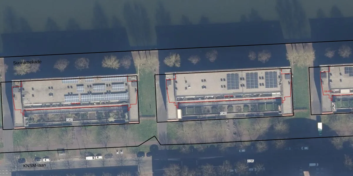 Het perceel waarop KNSM-laan 669 staat heeft een oppervlakte van 2086 m². Dit is een zeer groot perceel. De perceeloppervlakte wordt geregistreerd door het Kadaster. Gedetailleerde informatie over de maten van dit perceel kunt u vinden in het rapport Kadastrale kaart met maatvoering van KNSM-laan 669.