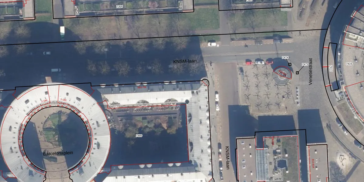 Het adres ligt op het perceel ASD02-A-7489, dat zich in de kadastrale gemeente Amsterdam bevindt. De oppervlakte van het perceel is 8522 m². Dat is groter dan gemiddeld in Amsterdam, waar de gemiddelde perceeloppervlakte op 2767,13 m² ligt. De grootste perceeloppervlakte in de kadastrale gemeente is 14,3 ha. De kleinste oppervlakte bedraagt 0 m². Op het perceel zijn 331 adressen aanwezig. In de Basisregistratie Kadaster (BRK) werden de grenzen van het perceel geregistreerd op 09-02-2006.