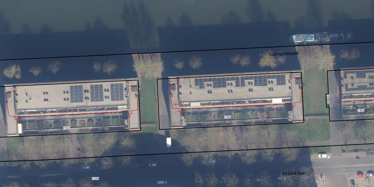 Het perceel waarop KNSM-laan 741 staat heeft een oppervlakte van 2086 m². Dit is een zeer groot perceel. De perceeloppervlakte wordt geregistreerd door het Kadaster. Gedetailleerde informatie over de maten van dit perceel kunt u vinden in het rapport Kadastrale kaart met maatvoering van KNSM-laan 741.