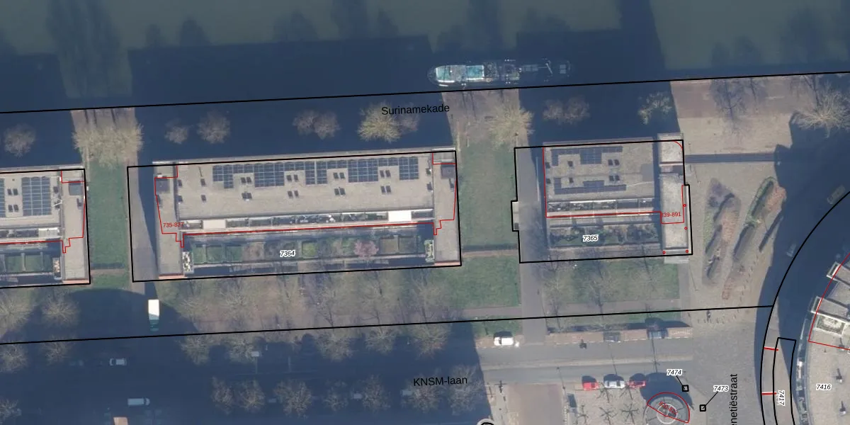 KNSM-laan 825 is gelegen op kadastraal perceel ASD02A7364. Deze kadastrale aanduiding is uniek en wordt gebruikt door het Kadaster om eigendomsrechten en andere zakelijke rechten vast te leggen. Het perceel maakt onderdeel uit van de kadastrale gemeente Amsterdam.