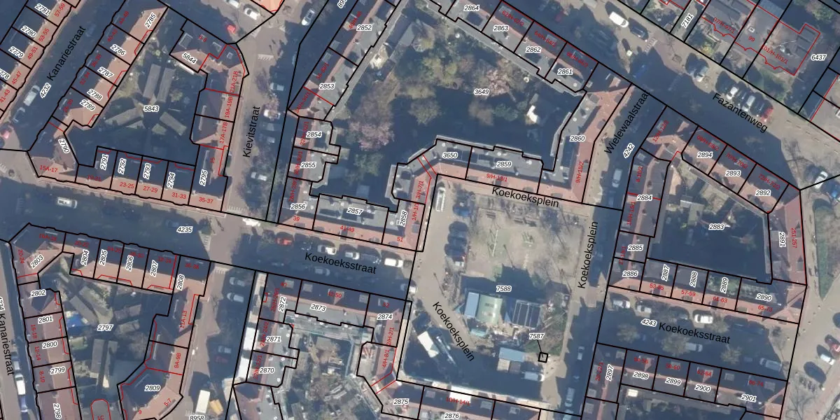 Koekoeksplein 1-H is gelegen op kadastraal perceel ASD07K2858. Deze kadastrale aanduiding is uniek en wordt gebruikt door het Kadaster om eigendomsrechten en andere zakelijke rechten vast te leggen. Het perceel maakt onderdeel uit van de kadastrale gemeente Amsterdam.