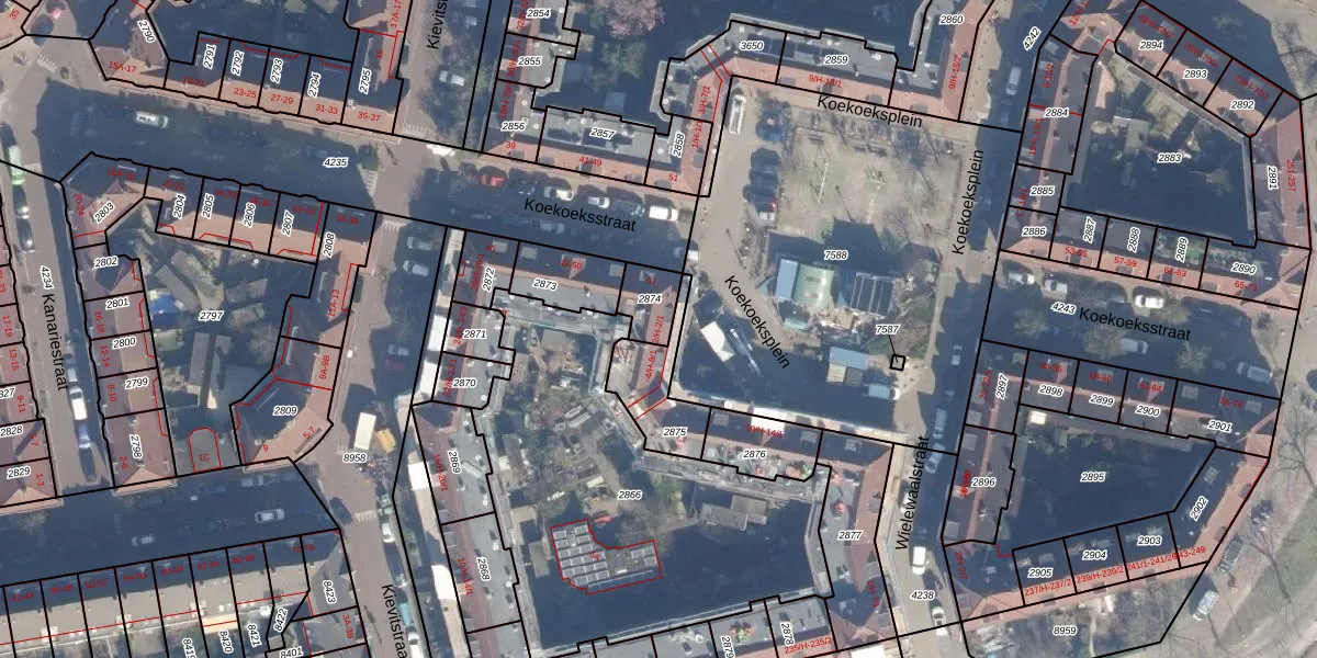 Koekoeksplein 2-1 is gelegen op kadastraal perceel ASD07K2874. Deze kadastrale aanduiding is uniek en wordt gebruikt door het Kadaster om eigendomsrechten en andere zakelijke rechten vast te leggen. Het perceel maakt onderdeel uit van de kadastrale gemeente Amsterdam.