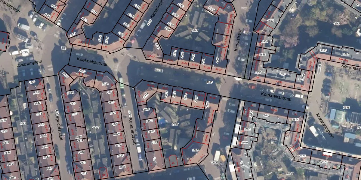 Het perceel waarop Koekoeksstraat 26 staat heeft een oppervlakte van 58 m². Dit is een klein perceel. De perceeloppervlakte wordt geregistreerd door het Kadaster. Gedetailleerde informatie over de maten van dit perceel kunt u vinden in het rapport Kadastrale kaart met maatvoering van Koekoeksstraat 26.