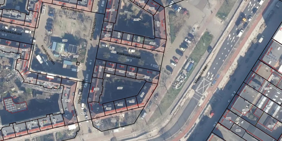 Koekoeksstraat 66 is gelegen op kadastraal perceel ASD07K2901. Deze kadastrale aanduiding is uniek en wordt gebruikt door het Kadaster om eigendomsrechten en andere zakelijke rechten vast te leggen. Het perceel maakt onderdeel uit van de kadastrale gemeente Amsterdam.