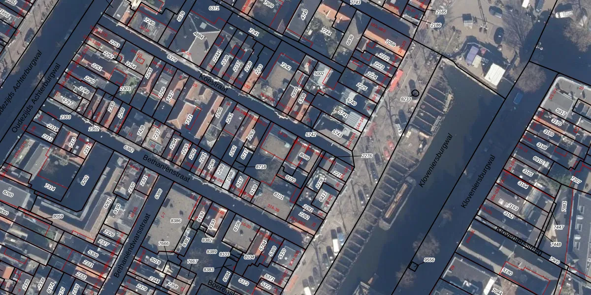Koestraat 34-H is gelegen op kadastraal perceel ASD05G8099. Deze kadastrale aanduiding is uniek en wordt gebruikt door het Kadaster om eigendomsrechten en andere zakelijke rechten vast te leggen. Het perceel maakt onderdeel uit van de kadastrale gemeente Amsterdam.