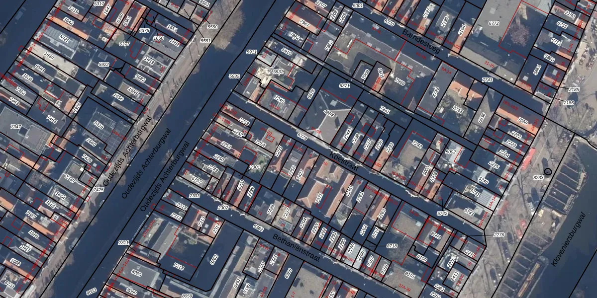 Koestraat 6-B is gelegen op kadastraal perceel ASD05G2256. Deze kadastrale aanduiding is uniek en wordt gebruikt door het Kadaster om eigendomsrechten en andere zakelijke rechten vast te leggen. Het perceel maakt onderdeel uit van de kadastrale gemeente Amsterdam.