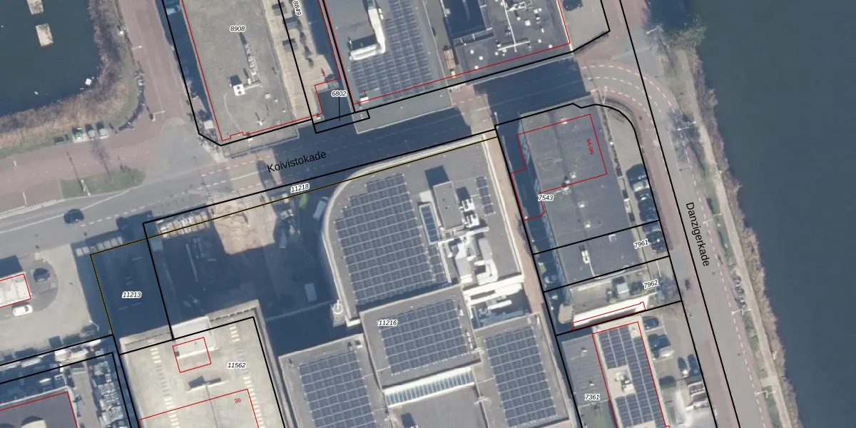 Het perceel waarop Koivistokade 30 staat heeft een oppervlakte van 5297 m². Dit is een zeer groot perceel. De perceeloppervlakte wordt geregistreerd door het Kadaster. Gedetailleerde informatie over de maten van dit perceel kunt u vinden in het rapport Kadastrale kaart met maatvoering van Koivistokade 30.