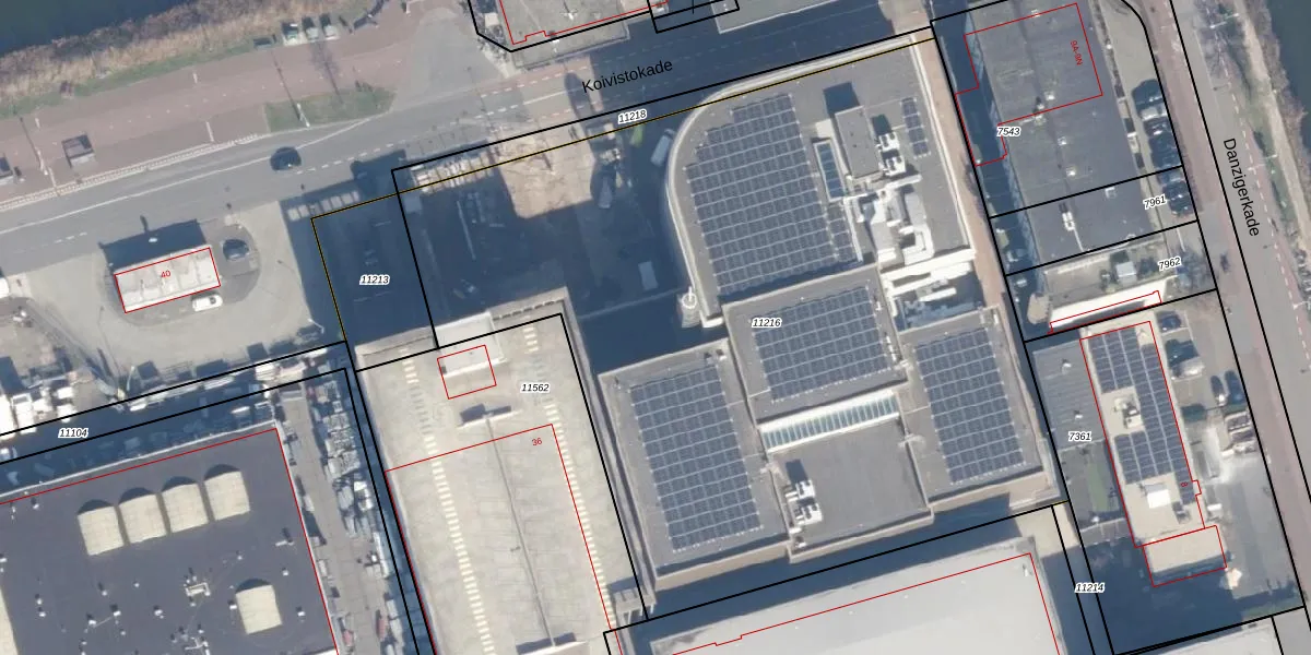 Het perceel waarop Koivistokade 34 staat heeft een oppervlakte van 5297 m². Dit is een zeer groot perceel. De perceeloppervlakte wordt geregistreerd door het Kadaster. Gedetailleerde informatie over de maten van dit perceel kunt u vinden in het rapport Kadastrale kaart met maatvoering van Koivistokade 34.