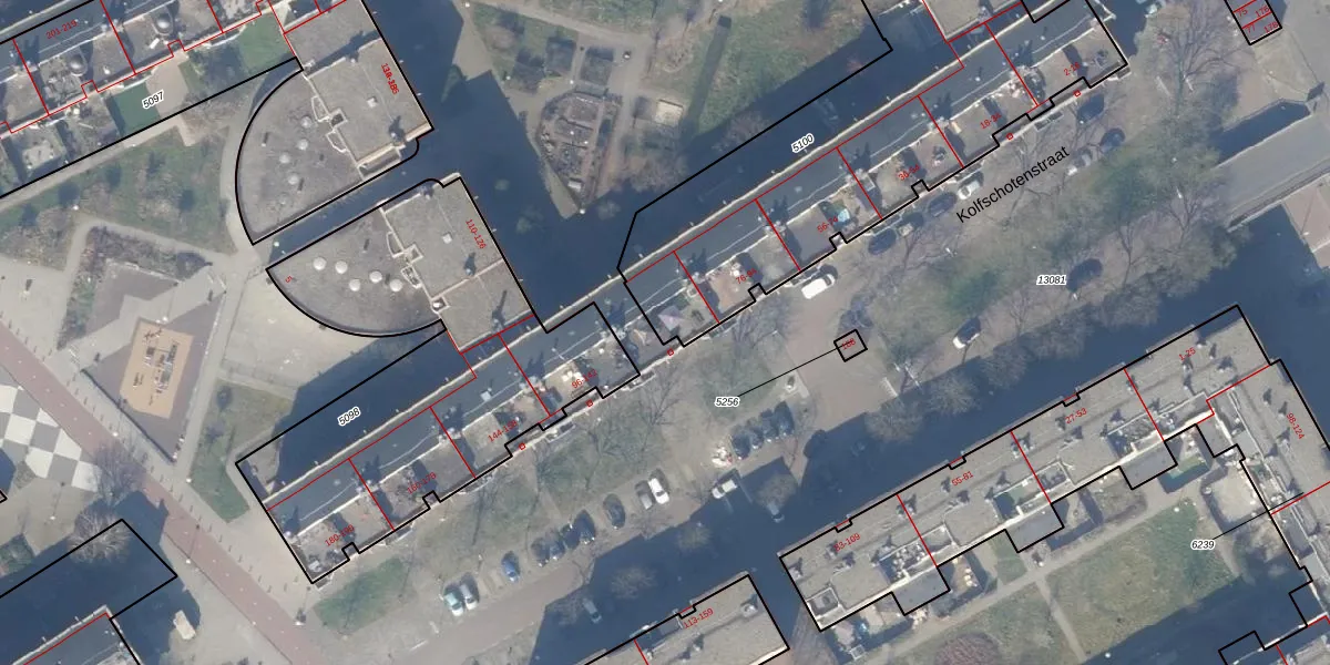 Het perceel waarop Kolfschotenstraat 106 staat heeft een oppervlakte van 1860 m². Dit is een zeer groot perceel. De perceeloppervlakte wordt geregistreerd door het Kadaster. Gedetailleerde informatie over de maten van dit perceel kunt u vinden in het rapport Kadastrale kaart met maatvoering van Kolfschotenstraat 106.