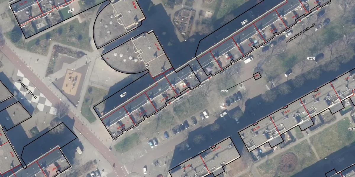 Het perceel waarop Kolfschotenstraat 142 staat heeft een oppervlakte van 1695 m². Dit is een zeer groot perceel. De perceeloppervlakte wordt geregistreerd door het Kadaster. Gedetailleerde informatie over de maten van dit perceel kunt u vinden in het rapport Kadastrale kaart met maatvoering van Kolfschotenstraat 142.