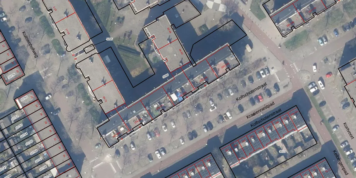 Het perceel waarop Kolfschotenstraat 242 staat heeft een oppervlakte van 3106 m². Dit is een zeer groot perceel. De perceeloppervlakte wordt geregistreerd door het Kadaster. Gedetailleerde informatie over de maten van dit perceel kunt u vinden in het rapport Kadastrale kaart met maatvoering van Kolfschotenstraat 242.