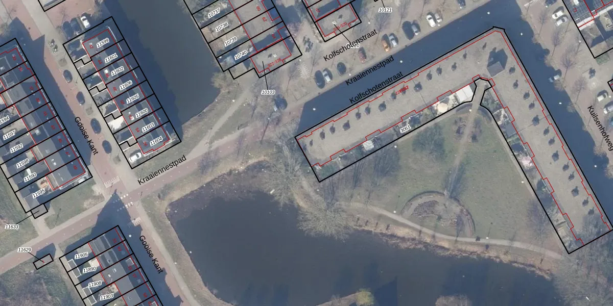 Het perceel waarop Kolfschotenstraat 301 staat heeft een oppervlakte van 2267 m². Dit is een zeer groot perceel. De perceeloppervlakte wordt geregistreerd door het Kadaster. Gedetailleerde informatie over de maten van dit perceel kunt u vinden in het rapport Kadastrale kaart met maatvoering van Kolfschotenstraat 301.