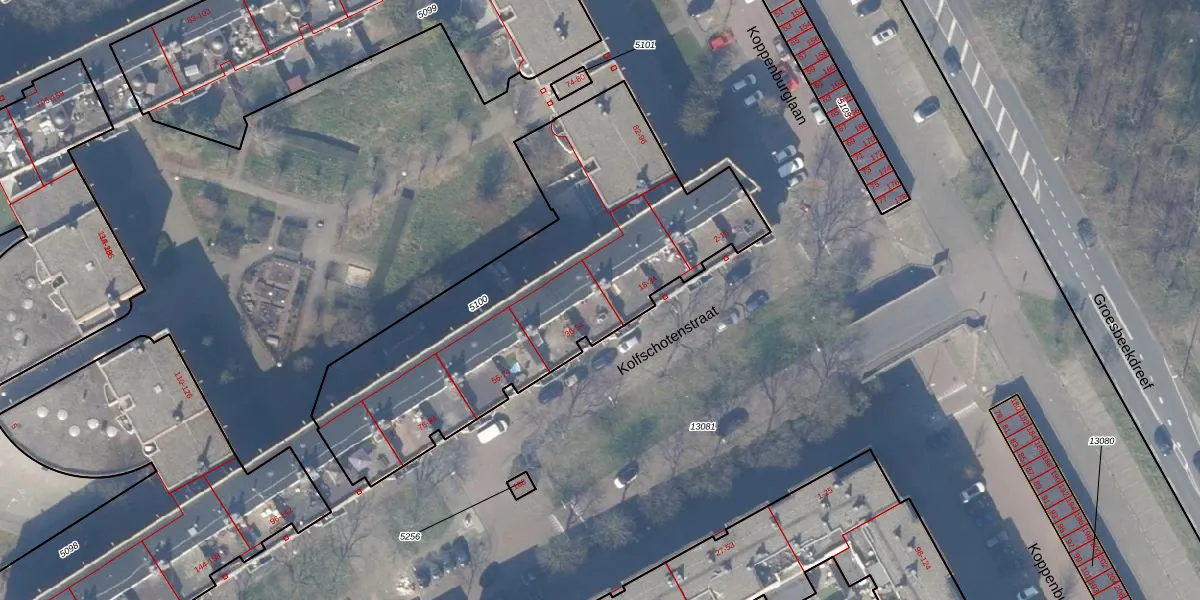 Het perceel waarop Kolfschotenstraat 36 staat heeft een oppervlakte van 1860 m². Dit is een zeer groot perceel. De perceeloppervlakte wordt geregistreerd door het Kadaster. Gedetailleerde informatie over de maten van dit perceel kunt u vinden in het rapport Kadastrale kaart met maatvoering van Kolfschotenstraat 36.