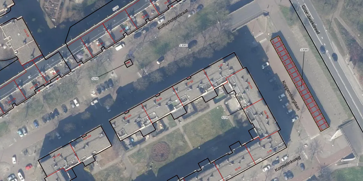 Het perceel waarop Kolfschotenstraat 45 staat heeft een oppervlakte van 2600 m². Dit is een zeer groot perceel. De perceeloppervlakte wordt geregistreerd door het Kadaster. Gedetailleerde informatie over de maten van dit perceel kunt u vinden in het rapport Kadastrale kaart met maatvoering van Kolfschotenstraat 45.