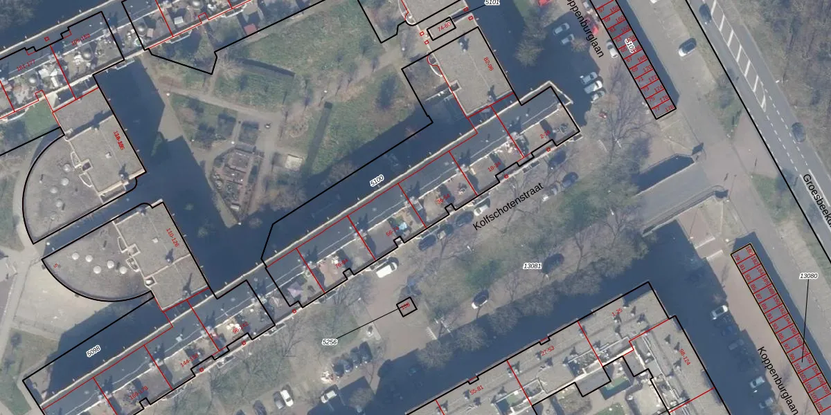 Het perceel waarop Kolfschotenstraat 52 staat heeft een oppervlakte van 1860 m². Dit is een zeer groot perceel. De perceeloppervlakte wordt geregistreerd door het Kadaster. Gedetailleerde informatie over de maten van dit perceel kunt u vinden in het rapport Kadastrale kaart met maatvoering van Kolfschotenstraat 52.