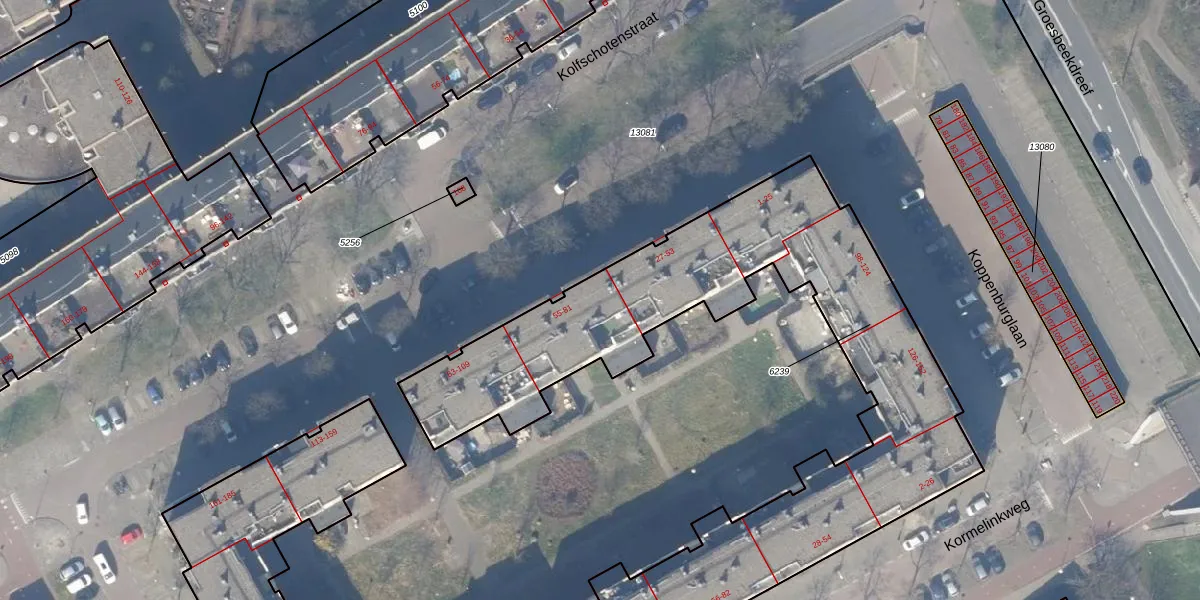 Het perceel waarop Kolfschotenstraat 55 staat heeft een oppervlakte van 2600 m². Dit is een zeer groot perceel. De perceeloppervlakte wordt geregistreerd door het Kadaster. Gedetailleerde informatie over de maten van dit perceel kunt u vinden in het rapport Kadastrale kaart met maatvoering van Kolfschotenstraat 55.