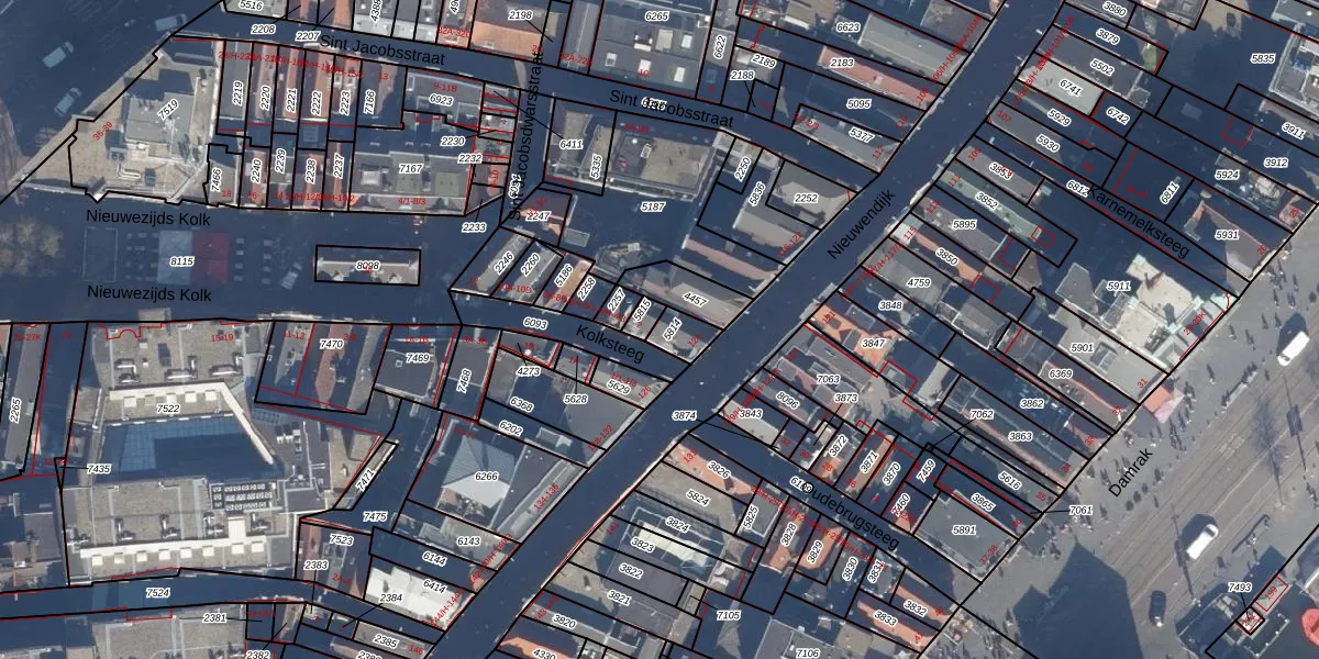 Het perceel waarop Kolksteeg 2-F staat heeft een oppervlakte van 58 m². Dit is een klein perceel. De perceeloppervlakte wordt geregistreerd door het Kadaster. Gedetailleerde informatie over de maten van dit perceel kunt u vinden in het rapport Kadastrale kaart met maatvoering van Kolksteeg 2-F.