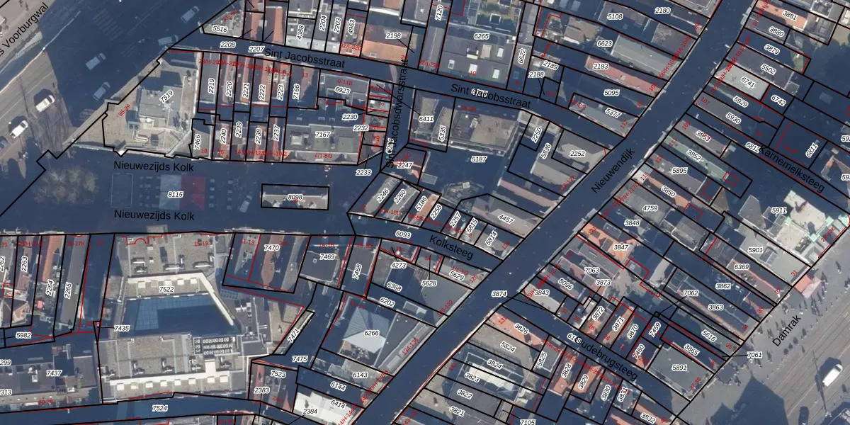 Het perceel waarop Kolksteeg 8-C staat heeft een oppervlakte van 45 m². Dit is een klein perceel. De perceeloppervlakte wordt geregistreerd door het Kadaster. Gedetailleerde informatie over de maten van dit perceel kunt u vinden in het rapport Kadastrale kaart met maatvoering van Kolksteeg 8-C.