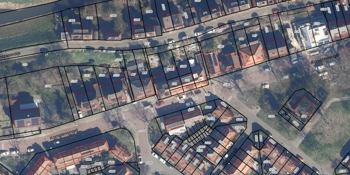 Kometensingel 114-1 is gelegen op kadastraal perceel ASD28AH221. Deze kadastrale aanduiding is uniek en wordt gebruikt door het Kadaster om eigendomsrechten en andere zakelijke rechten vast te leggen. Het perceel maakt onderdeel uit van de kadastrale gemeente Amsterdam.
