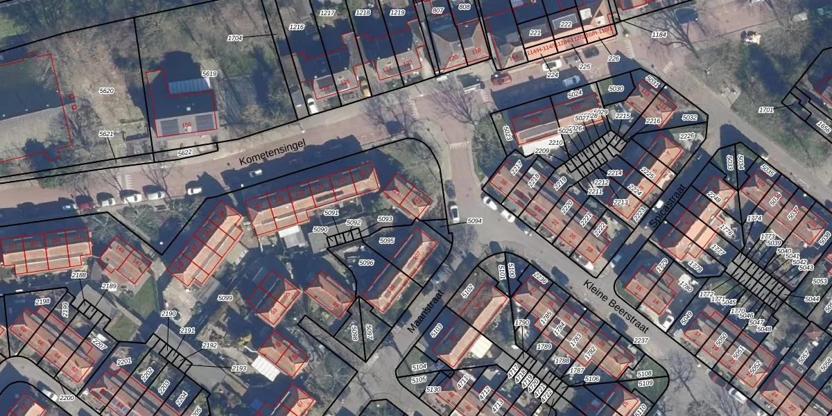 Het perceel waarop Kometensingel 123 staat heeft een oppervlakte van 5427 m². Dit is een zeer groot perceel. De perceeloppervlakte wordt geregistreerd door het Kadaster. Gedetailleerde informatie over de maten van dit perceel kunt u vinden in het rapport Kadastrale kaart met maatvoering van Kometensingel 123.
