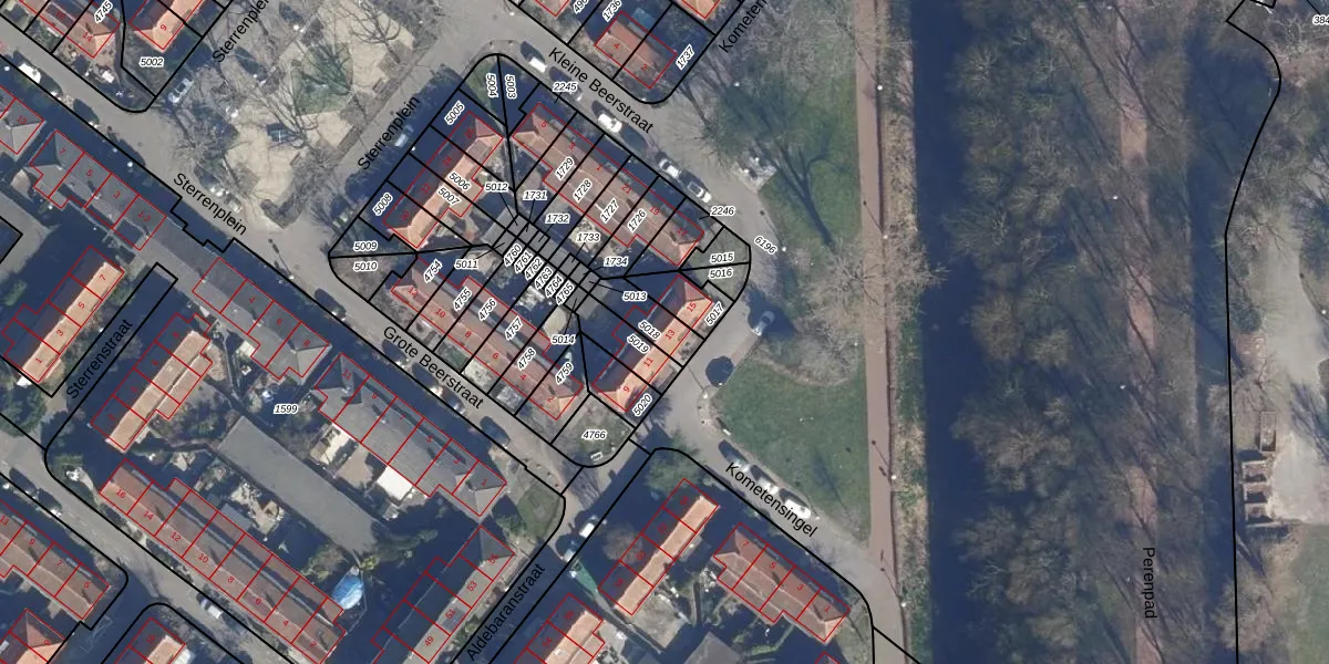 Het perceel waarop Kometensingel 13 staat heeft een oppervlakte van 92 m². Dit is een klein perceel. De perceeloppervlakte wordt geregistreerd door het Kadaster. Gedetailleerde informatie over de maten van dit perceel kunt u vinden in het rapport Kadastrale kaart met maatvoering van Kometensingel 13.