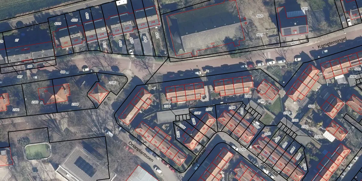 Het perceel waarop Kometensingel 163 staat heeft een oppervlakte van 5427 m². Dit is een zeer groot perceel. De perceeloppervlakte wordt geregistreerd door het Kadaster. Gedetailleerde informatie over de maten van dit perceel kunt u vinden in het rapport Kadastrale kaart met maatvoering van Kometensingel 163.