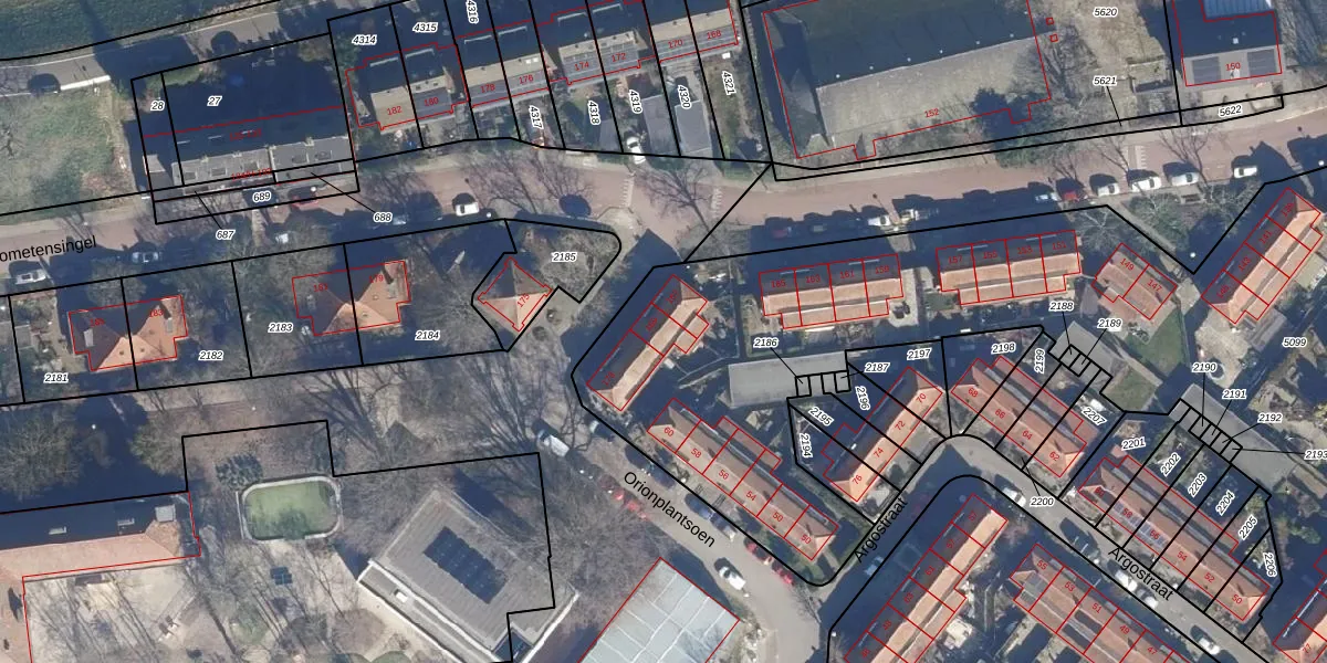 Het perceel waarop Kometensingel 169 staat heeft een oppervlakte van 5427 m². Dit is een zeer groot perceel. De perceeloppervlakte wordt geregistreerd door het Kadaster. Gedetailleerde informatie over de maten van dit perceel kunt u vinden in het rapport Kadastrale kaart met maatvoering van Kometensingel 169.