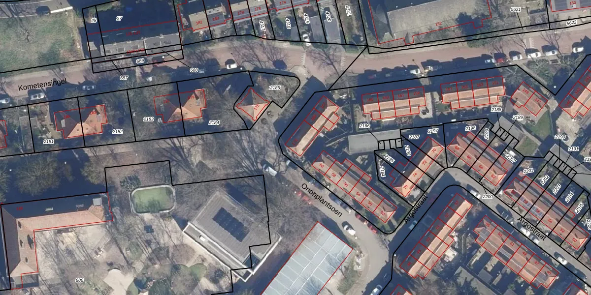 Het perceel waarop Kometensingel 173 staat heeft een oppervlakte van 5427 m². Dit is een zeer groot perceel. De perceeloppervlakte wordt geregistreerd door het Kadaster. Gedetailleerde informatie over de maten van dit perceel kunt u vinden in het rapport Kadastrale kaart met maatvoering van Kometensingel 173.