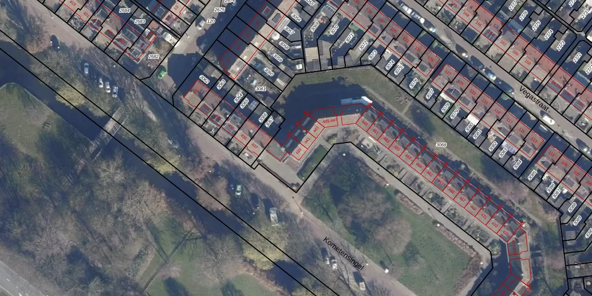 Het perceel waarop Kometensingel 439 staat heeft een oppervlakte van 3596 m². Dit is een zeer groot perceel. De perceeloppervlakte wordt geregistreerd door het Kadaster. Gedetailleerde informatie over de maten van dit perceel kunt u vinden in het rapport Kadastrale kaart met maatvoering van Kometensingel 439.