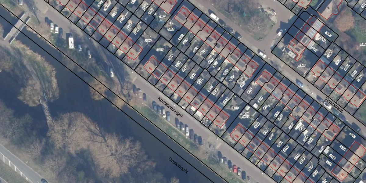 Kometensingel 597 is gelegen op kadastraal perceel ASD28AH3011. Deze kadastrale aanduiding is uniek en wordt gebruikt door het Kadaster om eigendomsrechten en andere zakelijke rechten vast te leggen. Het perceel maakt onderdeel uit van de kadastrale gemeente Amsterdam.