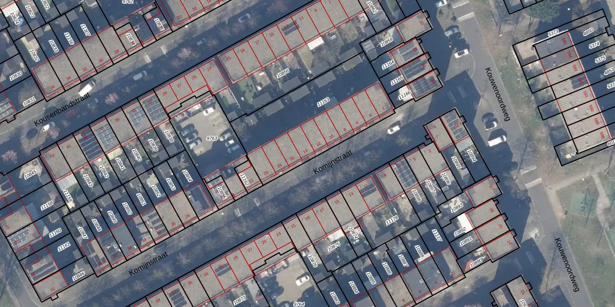 Het perceel waarop Komijnstraat 14 staat heeft een oppervlakte van 1116 m². Dit is een zeer groot perceel. De perceeloppervlakte wordt geregistreerd door het Kadaster. Gedetailleerde informatie over de maten van dit perceel kunt u vinden in het rapport Kadastrale kaart met maatvoering van Komijnstraat 14.