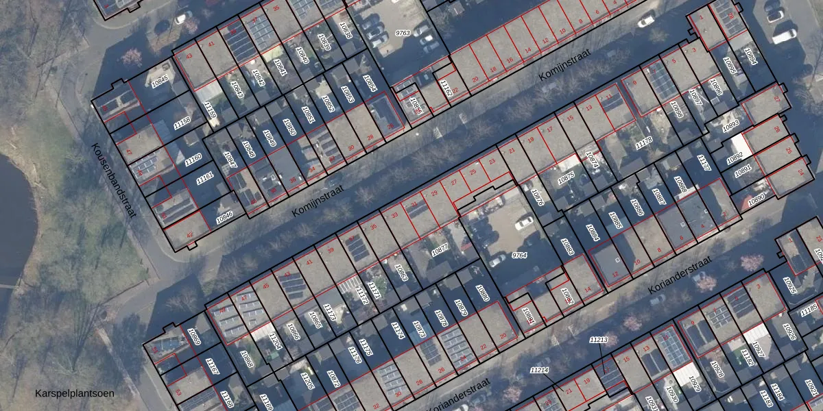 Het perceel waarop Komijnstraat 31 staat heeft een oppervlakte van 514 m². Dit is een groot perceel. De perceeloppervlakte wordt geregistreerd door het Kadaster. Gedetailleerde informatie over de maten van dit perceel kunt u vinden in het rapport Kadastrale kaart met maatvoering van Komijnstraat 31.