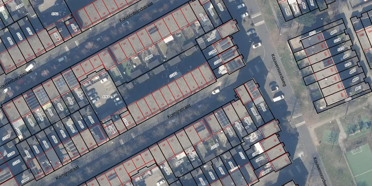 Het perceel waarop Komijnstraat 8 staat heeft een oppervlakte van 1116 m². Dit is een zeer groot perceel. De perceeloppervlakte wordt geregistreerd door het Kadaster. Gedetailleerde informatie over de maten van dit perceel kunt u vinden in het rapport Kadastrale kaart met maatvoering van Komijnstraat 8.