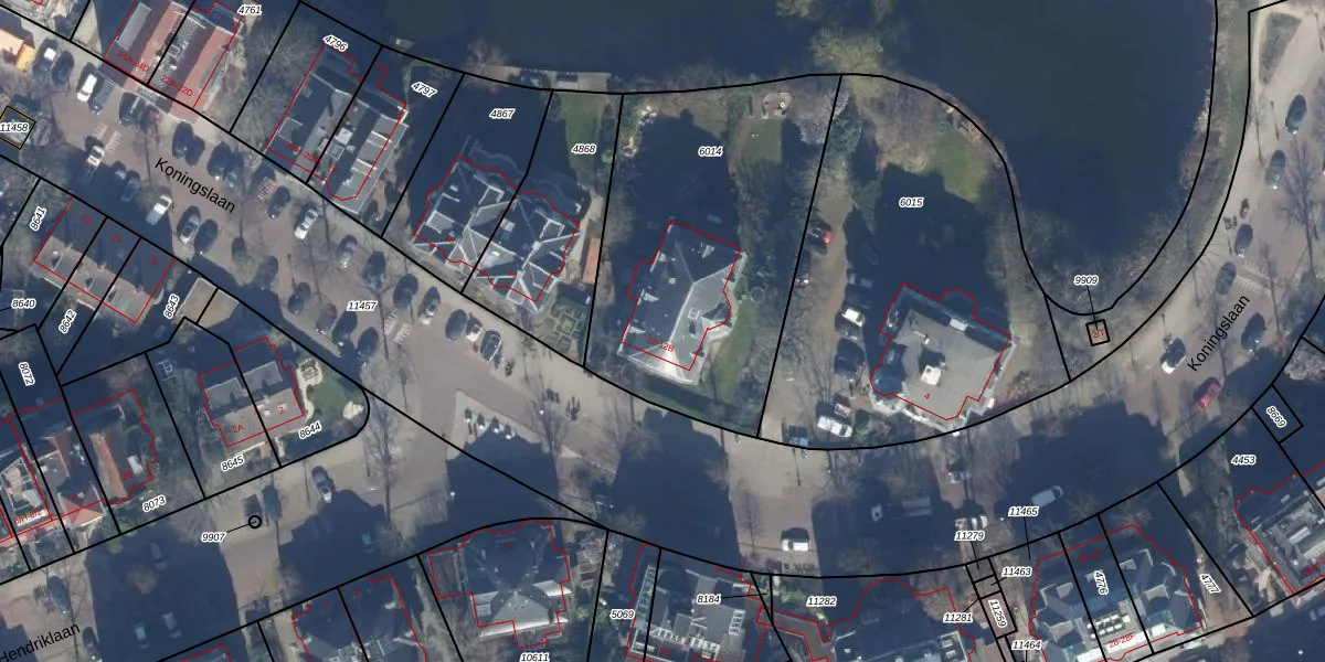 Het perceel waarop Koningslaan 12-A staat heeft een oppervlakte van 1430 m². Dit is een zeer groot perceel. De perceeloppervlakte wordt geregistreerd door het Kadaster. Gedetailleerde informatie over de maten van dit perceel kunt u vinden in het rapport Kadastrale kaart met maatvoering van Koningslaan 12-A.