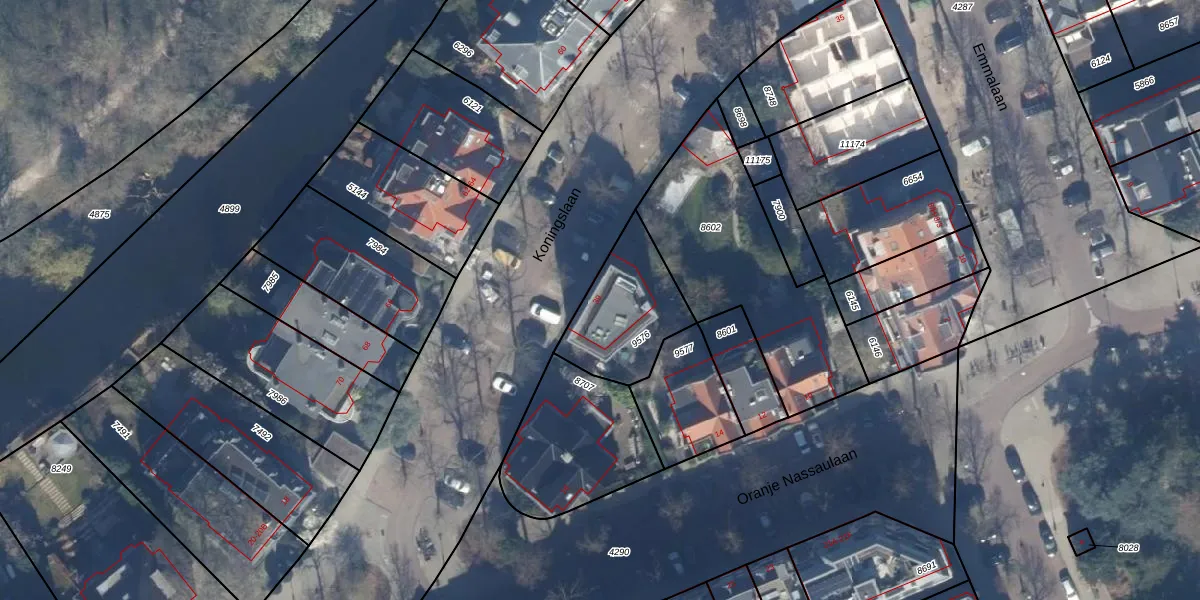 Het perceel waarop Koningslaan 39-D staat heeft een oppervlakte van 355 m². Dit is een groot perceel. De perceeloppervlakte wordt geregistreerd door het Kadaster. Gedetailleerde informatie over de maten van dit perceel kunt u vinden in het rapport Kadastrale kaart met maatvoering van Koningslaan 39-D.