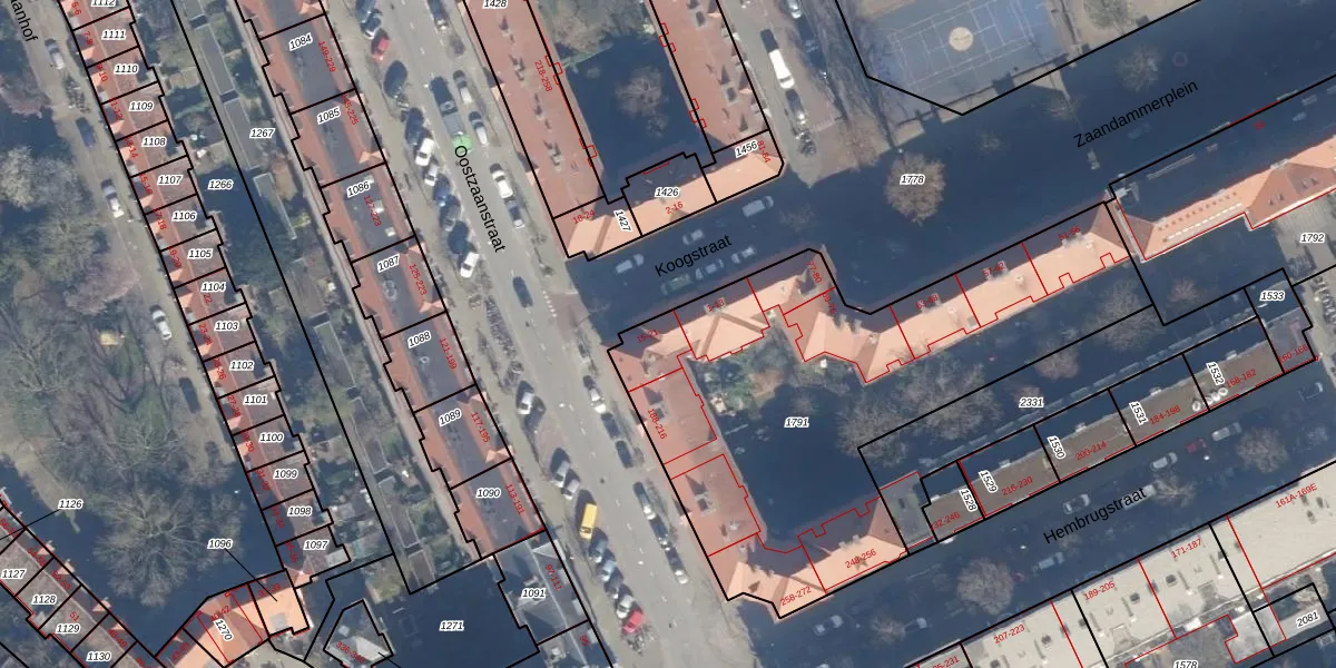 Het adres is gelegen op perceel 1791 in de sectie X en de kadastrale gemeente Amsterdam. De kadastrale aanduiding is aldus ASD20-X-1791. Het perceel is met 2256 m² relatief groot. Het gemiddelde ligt in de kadastrale gemeente Amsterdam op 466,51 m². Het kleinste perceel in de kadastrale gemeente is 0 m² groot. De grootste perceeloppervlakte is 3,6 ha. Op het perceel zijn 69 adressen aanwezig. De huidige grenzen van het perceel zijn digitaal in de Basisregistratie Kadaster (BRK) geregistreerd op 09-01-2015.
