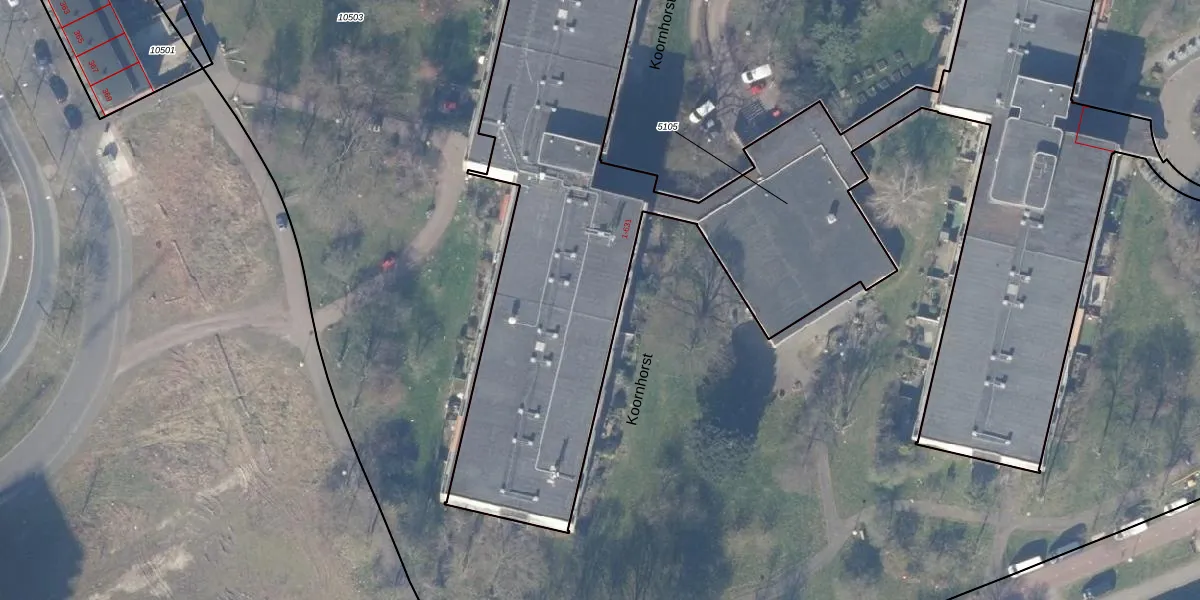Het perceel waarop Koornhorst 12 staat heeft een oppervlakte van 5615 m². Dit is een zeer groot perceel. De perceeloppervlakte wordt geregistreerd door het Kadaster. Gedetailleerde informatie over de maten van dit perceel kunt u vinden in het rapport Kadastrale kaart met maatvoering van Koornhorst 12.