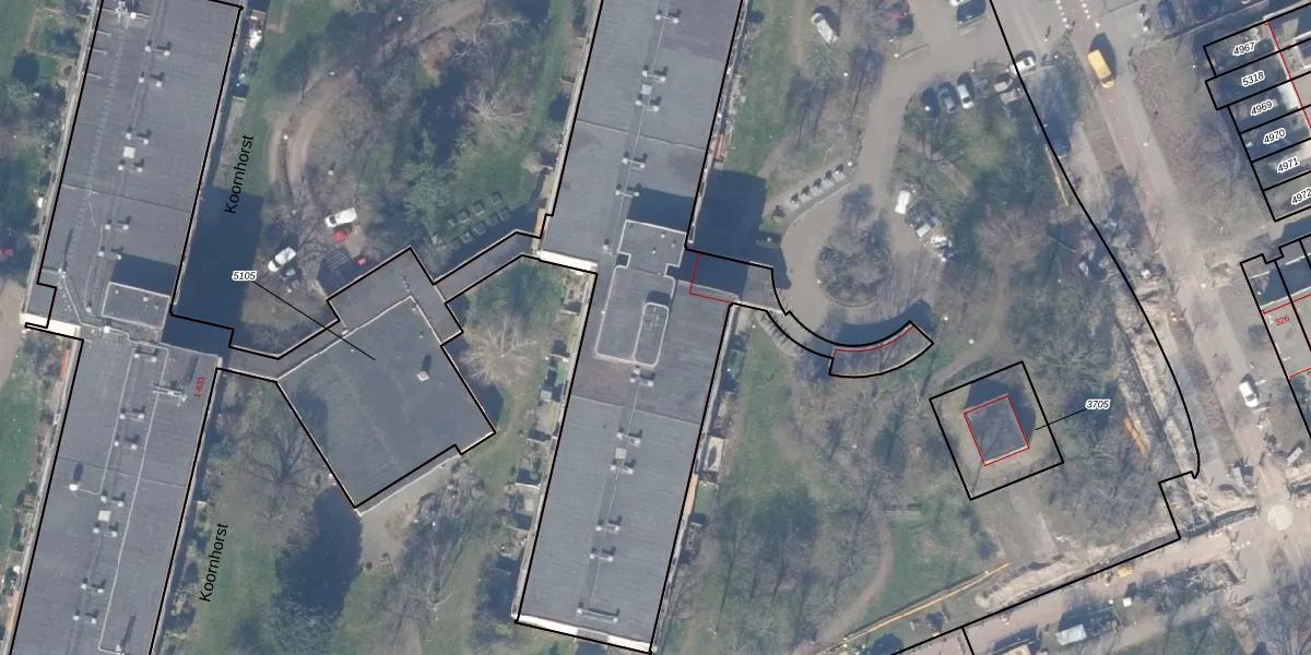 Het perceel waarop Koornhorst 137 staat heeft een oppervlakte van 5615 m². Dit is een zeer groot perceel. De perceeloppervlakte wordt geregistreerd door het Kadaster. Gedetailleerde informatie over de maten van dit perceel kunt u vinden in het rapport Kadastrale kaart met maatvoering van Koornhorst 137.