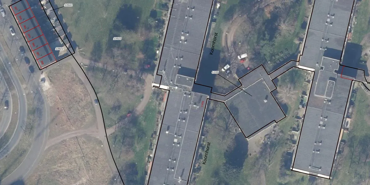 Het perceel waarop Koornhorst 214 staat heeft een oppervlakte van 5615 m². Dit is een zeer groot perceel. De perceeloppervlakte wordt geregistreerd door het Kadaster. Gedetailleerde informatie over de maten van dit perceel kunt u vinden in het rapport Kadastrale kaart met maatvoering van Koornhorst 214.