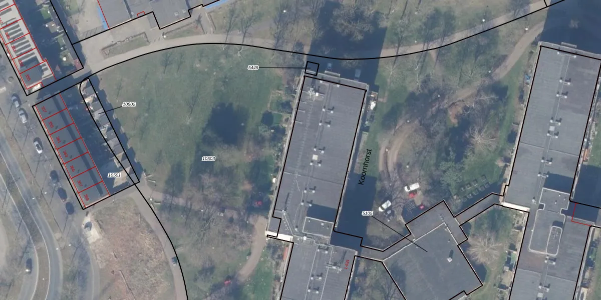 Het perceel waarop Koornhorst 25 staat heeft een oppervlakte van 5615 m². Dit is een zeer groot perceel. De perceeloppervlakte wordt geregistreerd door het Kadaster. Gedetailleerde informatie over de maten van dit perceel kunt u vinden in het rapport Kadastrale kaart met maatvoering van Koornhorst 25.