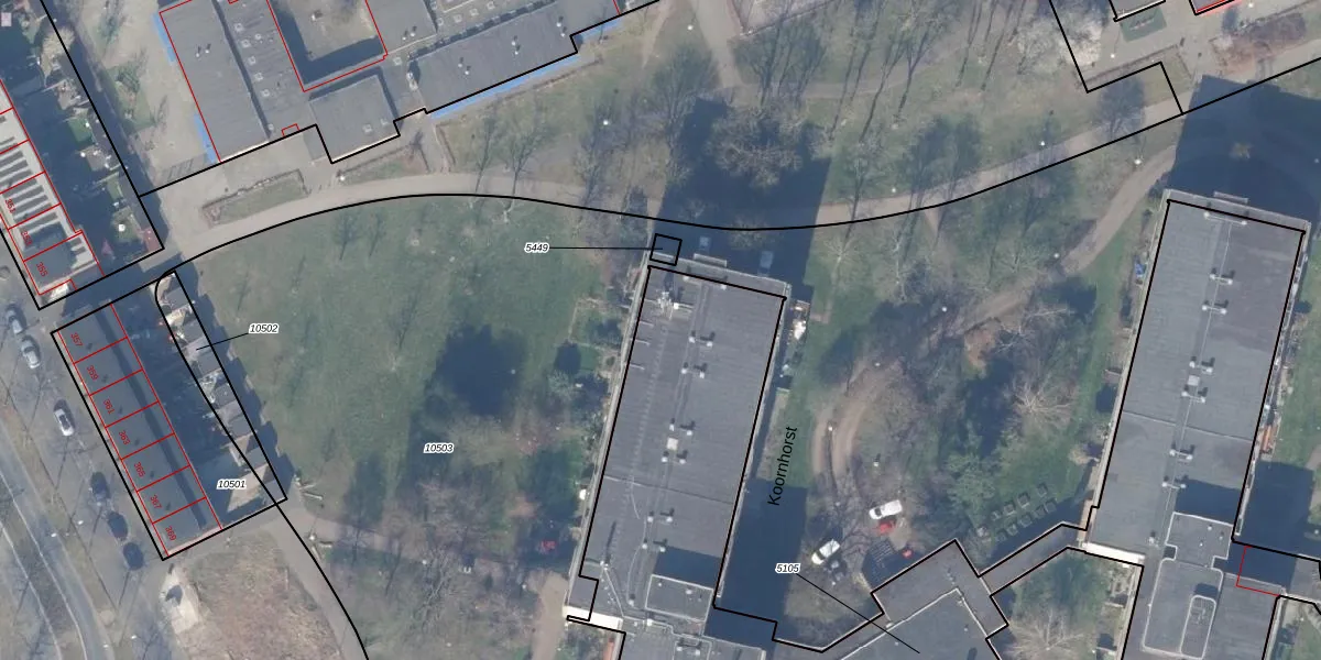 Het perceel waarop Koornhorst 29 staat heeft een oppervlakte van 5615 m². Dit is een zeer groot perceel. De perceeloppervlakte wordt geregistreerd door het Kadaster. Gedetailleerde informatie over de maten van dit perceel kunt u vinden in het rapport Kadastrale kaart met maatvoering van Koornhorst 29.