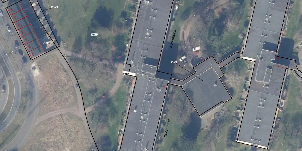 Het perceel waarop Koornhorst 321 staat heeft een oppervlakte van 5615 m². Dit is een zeer groot perceel. De perceeloppervlakte wordt geregistreerd door het Kadaster. Gedetailleerde informatie over de maten van dit perceel kunt u vinden in het rapport Kadastrale kaart met maatvoering van Koornhorst 321.