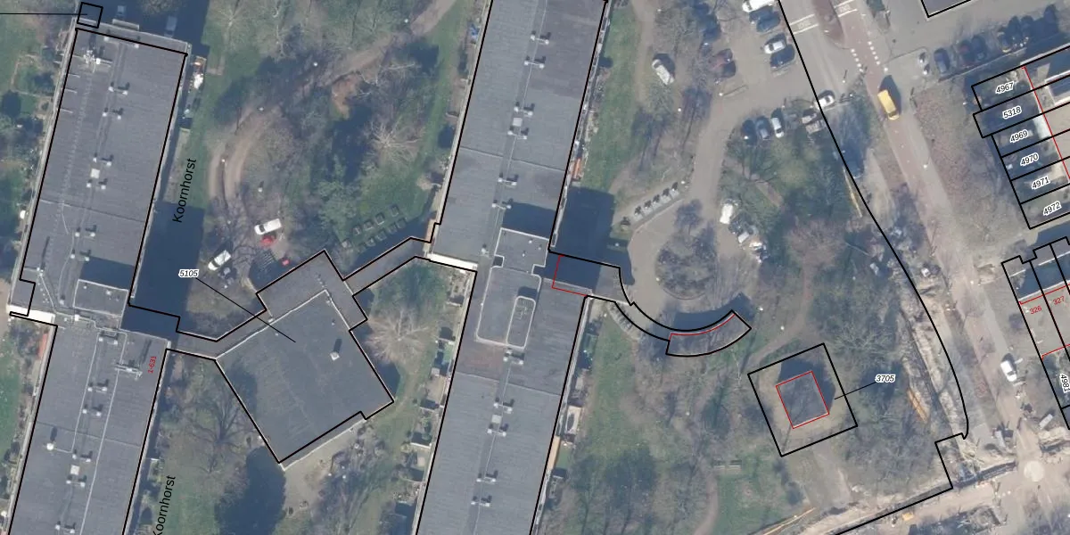 Het perceel waarop Koornhorst 363 staat heeft een oppervlakte van 5615 m². Dit is een zeer groot perceel. De perceeloppervlakte wordt geregistreerd door het Kadaster. Gedetailleerde informatie over de maten van dit perceel kunt u vinden in het rapport Kadastrale kaart met maatvoering van Koornhorst 363.