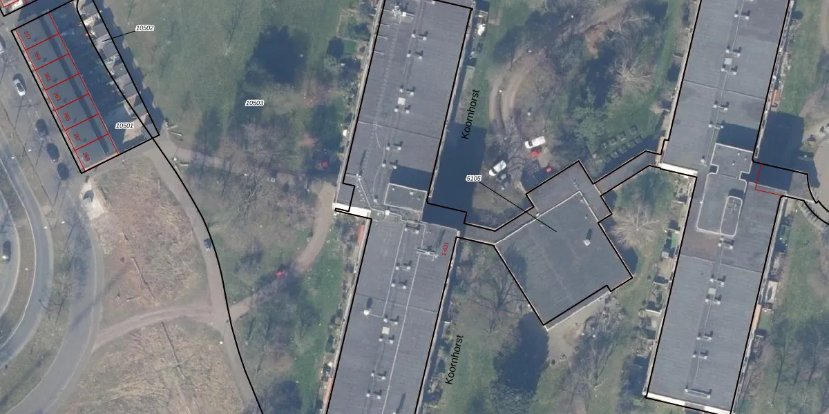 Het perceel waarop Koornhorst 424 staat heeft een oppervlakte van 5615 m². Dit is een zeer groot perceel. De perceeloppervlakte wordt geregistreerd door het Kadaster. Gedetailleerde informatie over de maten van dit perceel kunt u vinden in het rapport Kadastrale kaart met maatvoering van Koornhorst 424.