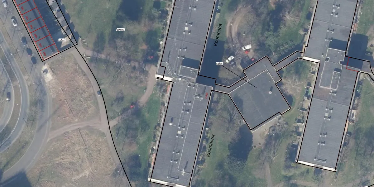 Het perceel waarop Koornhorst 501 staat heeft een oppervlakte van 5615 m². Dit is een zeer groot perceel. De perceeloppervlakte wordt geregistreerd door het Kadaster. Gedetailleerde informatie over de maten van dit perceel kunt u vinden in het rapport Kadastrale kaart met maatvoering van Koornhorst 501.