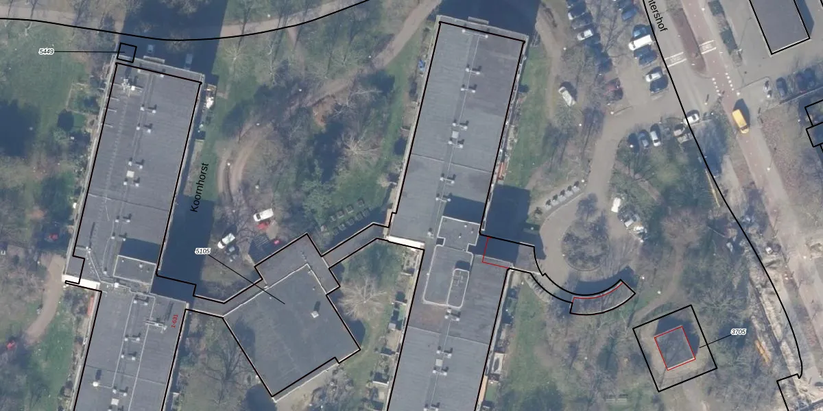 Het perceel waarop Koornhorst 51 staat heeft een oppervlakte van 5615 m². Dit is een zeer groot perceel. De perceeloppervlakte wordt geregistreerd door het Kadaster. Gedetailleerde informatie over de maten van dit perceel kunt u vinden in het rapport Kadastrale kaart met maatvoering van Koornhorst 51.