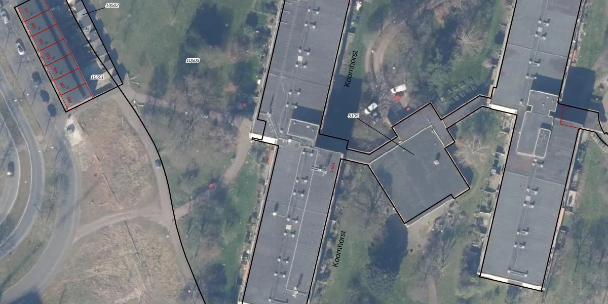 Het perceel waarop Koornhorst 511 staat heeft een oppervlakte van 5615 m². Dit is een zeer groot perceel. De perceeloppervlakte wordt geregistreerd door het Kadaster. Gedetailleerde informatie over de maten van dit perceel kunt u vinden in het rapport Kadastrale kaart met maatvoering van Koornhorst 511.