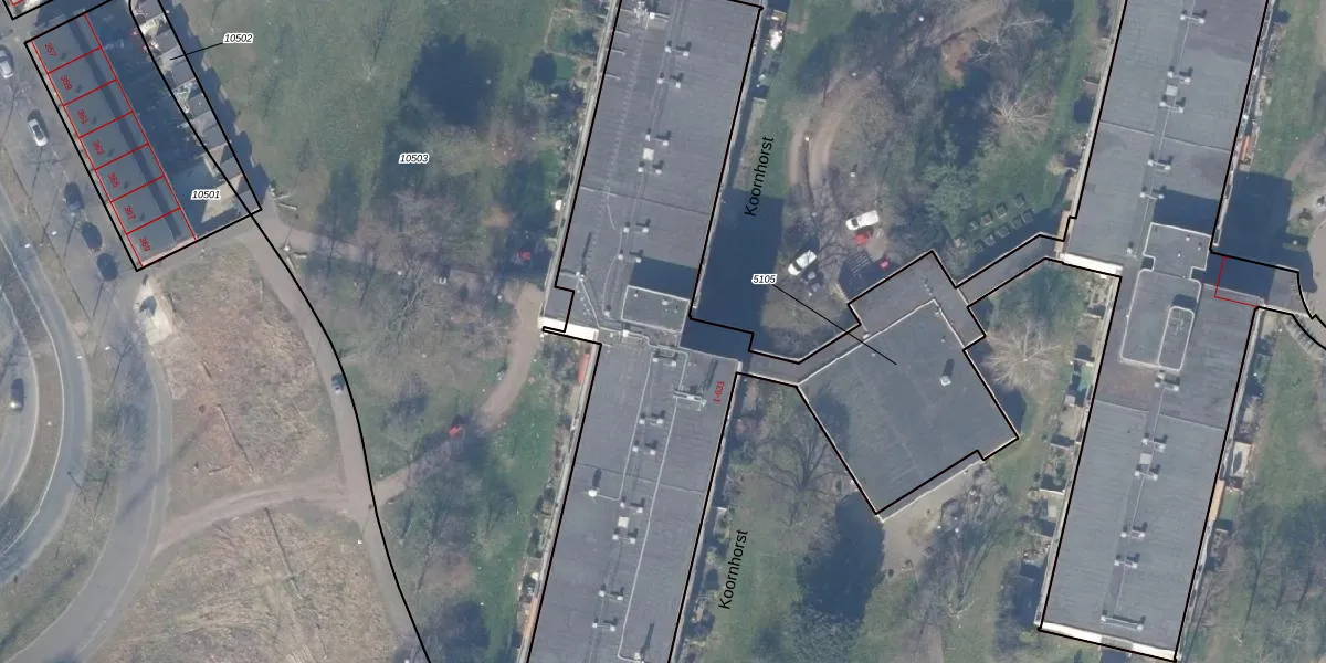 Het perceel waarop Koornhorst 523 staat heeft een oppervlakte van 5615 m². Dit is een zeer groot perceel. De perceeloppervlakte wordt geregistreerd door het Kadaster. Gedetailleerde informatie over de maten van dit perceel kunt u vinden in het rapport Kadastrale kaart met maatvoering van Koornhorst 523.