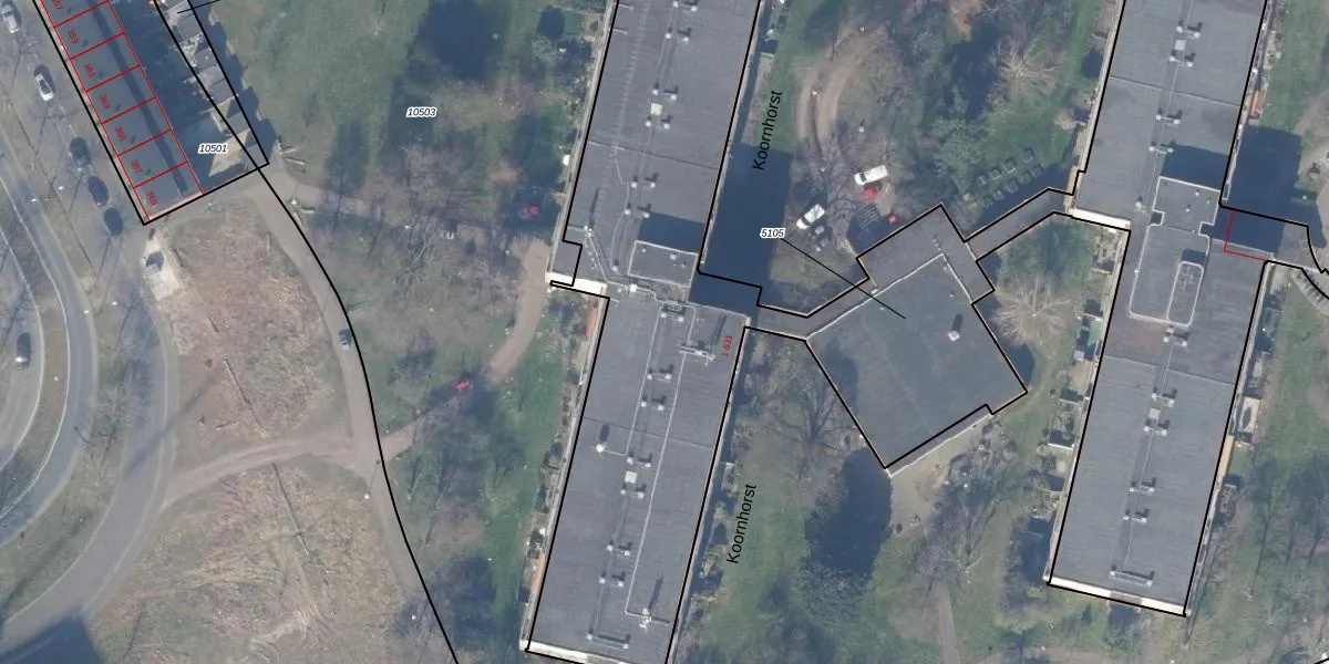 Het perceel waarop Koornhorst 603 staat heeft een oppervlakte van 5615 m². Dit is een zeer groot perceel. De perceeloppervlakte wordt geregistreerd door het Kadaster. Gedetailleerde informatie over de maten van dit perceel kunt u vinden in het rapport Kadastrale kaart met maatvoering van Koornhorst 603.