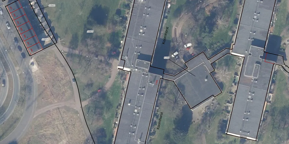 Het perceel waarop Koornhorst 617 staat heeft een oppervlakte van 5615 m². Dit is een zeer groot perceel. De perceeloppervlakte wordt geregistreerd door het Kadaster. Gedetailleerde informatie over de maten van dit perceel kunt u vinden in het rapport Kadastrale kaart met maatvoering van Koornhorst 617.